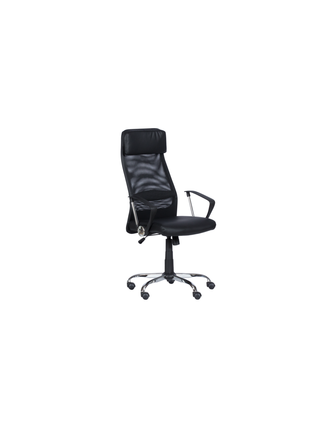 Президентския стол Carmen 6184 притежава изчистен и стилен дизайн. Изработен е от здрава и еластична текстилна мрежа, еко кожа и стабилна хромирана основа. Столът е с вграден газов амортисьор за коригиране на височината и регулируем люлеещ механизъм.